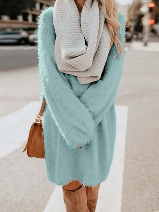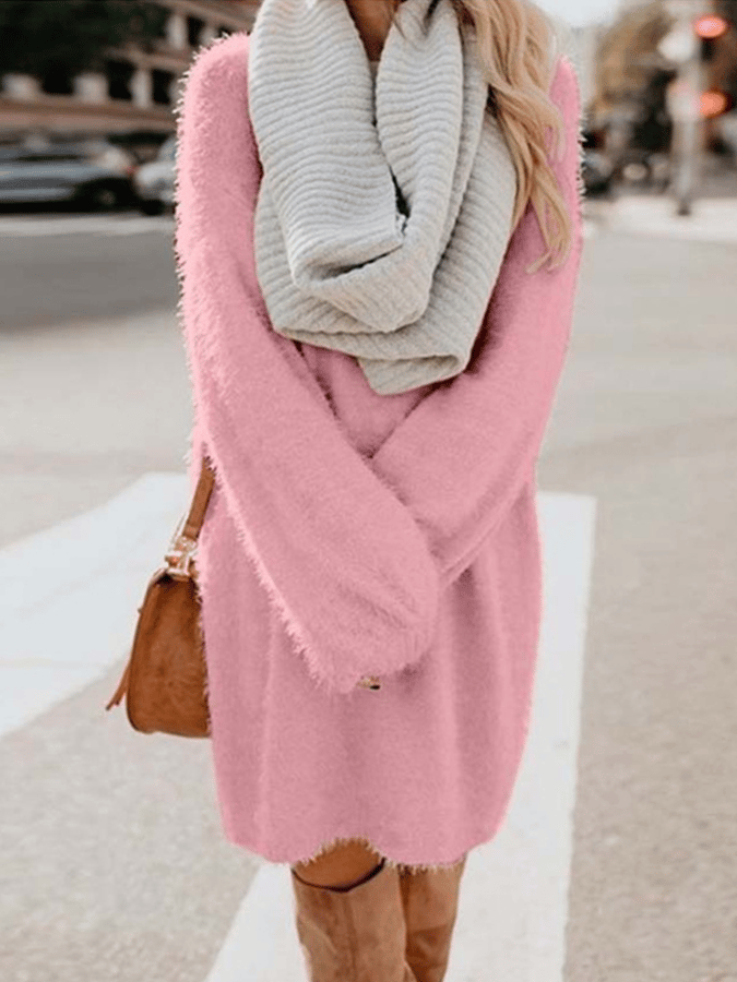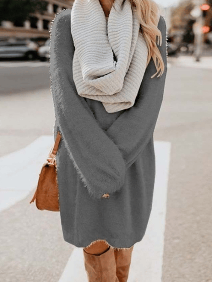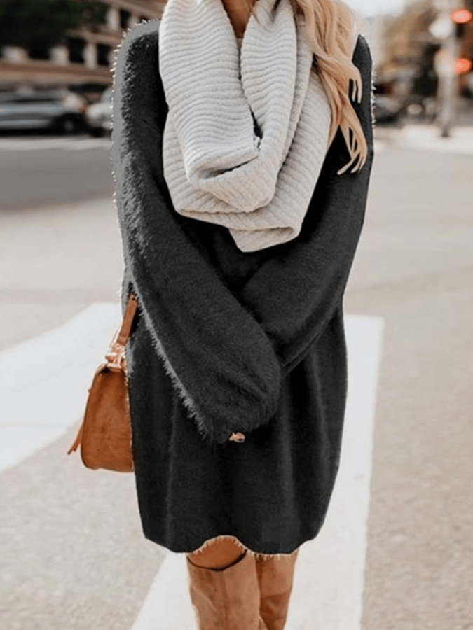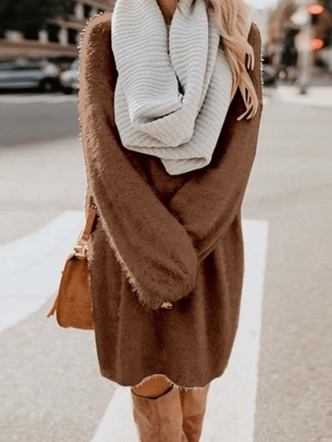• Women's Round Neck Loose Plush Dress